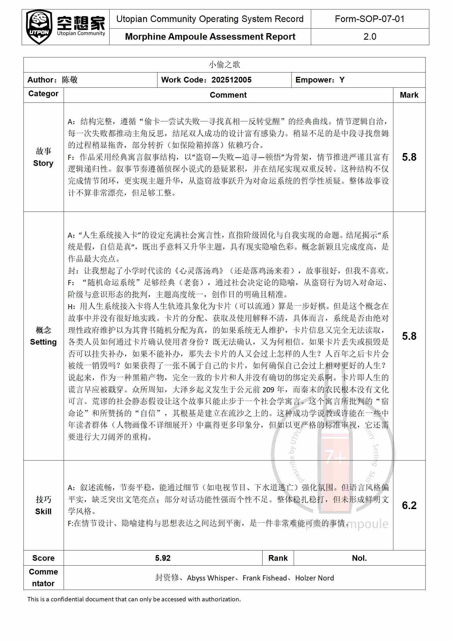 作品链接:小偷之歌 http://www.utpon.com/index.php/article/show/id-9109